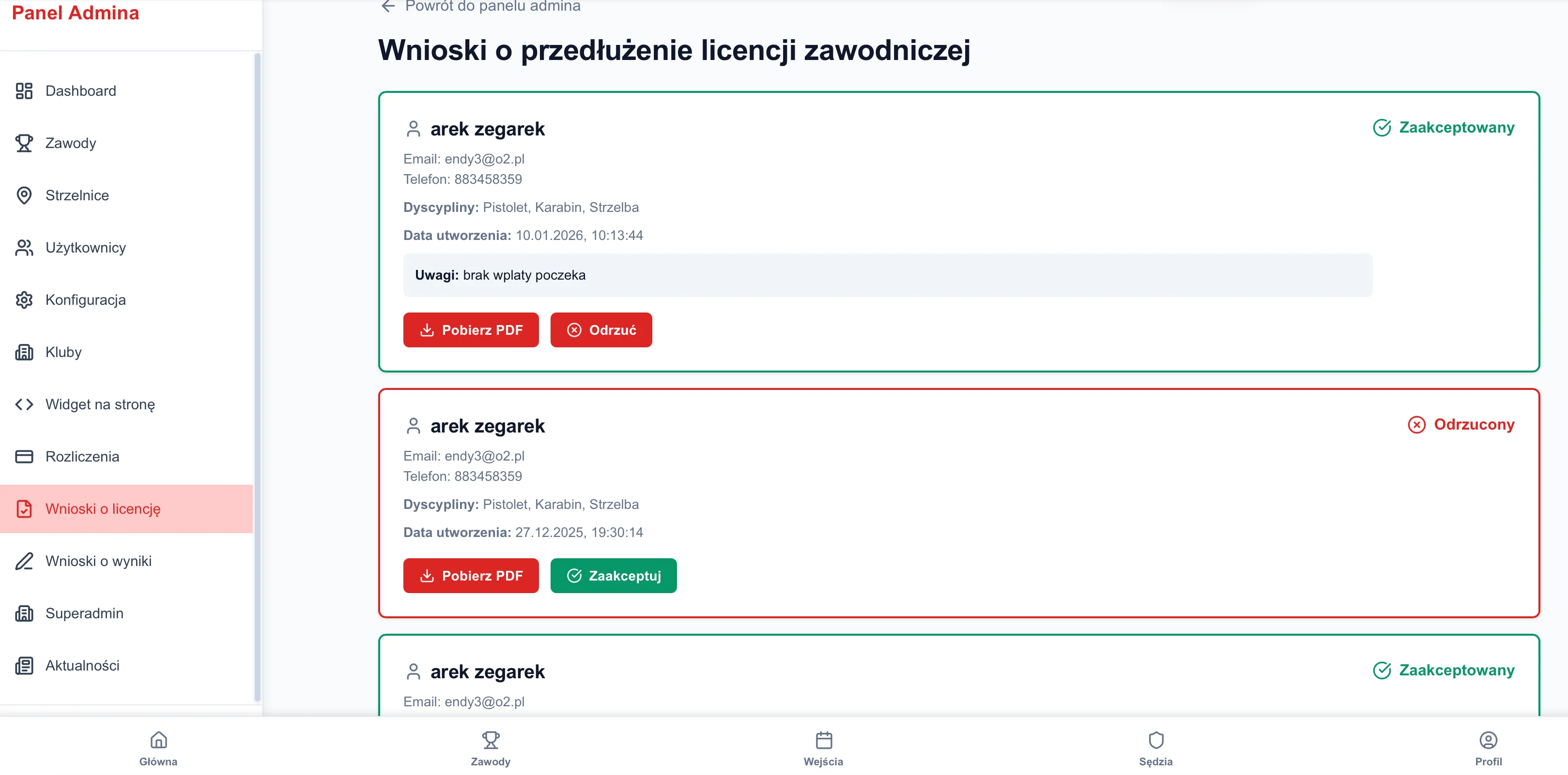 Nie każde zgłoszenie powinno od razu oznaczać pełne przyjęcie na zawody. Czasem klub chce najpierw sprawdzić dane, potwierdzić dostępność miejsc albo zweryfikować szczegóły związane z wydarzeniem. Właśnie dlatego ważne jest, aby organizator widział nie tylko samą listę zapisów, ale też mógł zarządzać ich statusem.